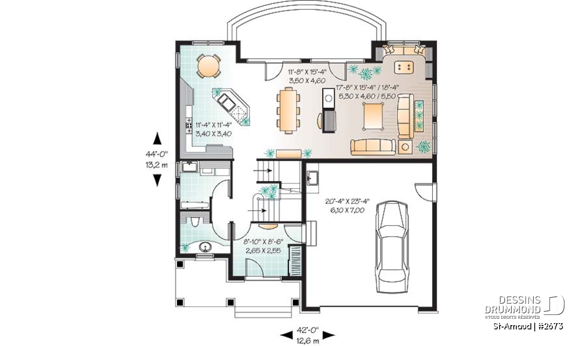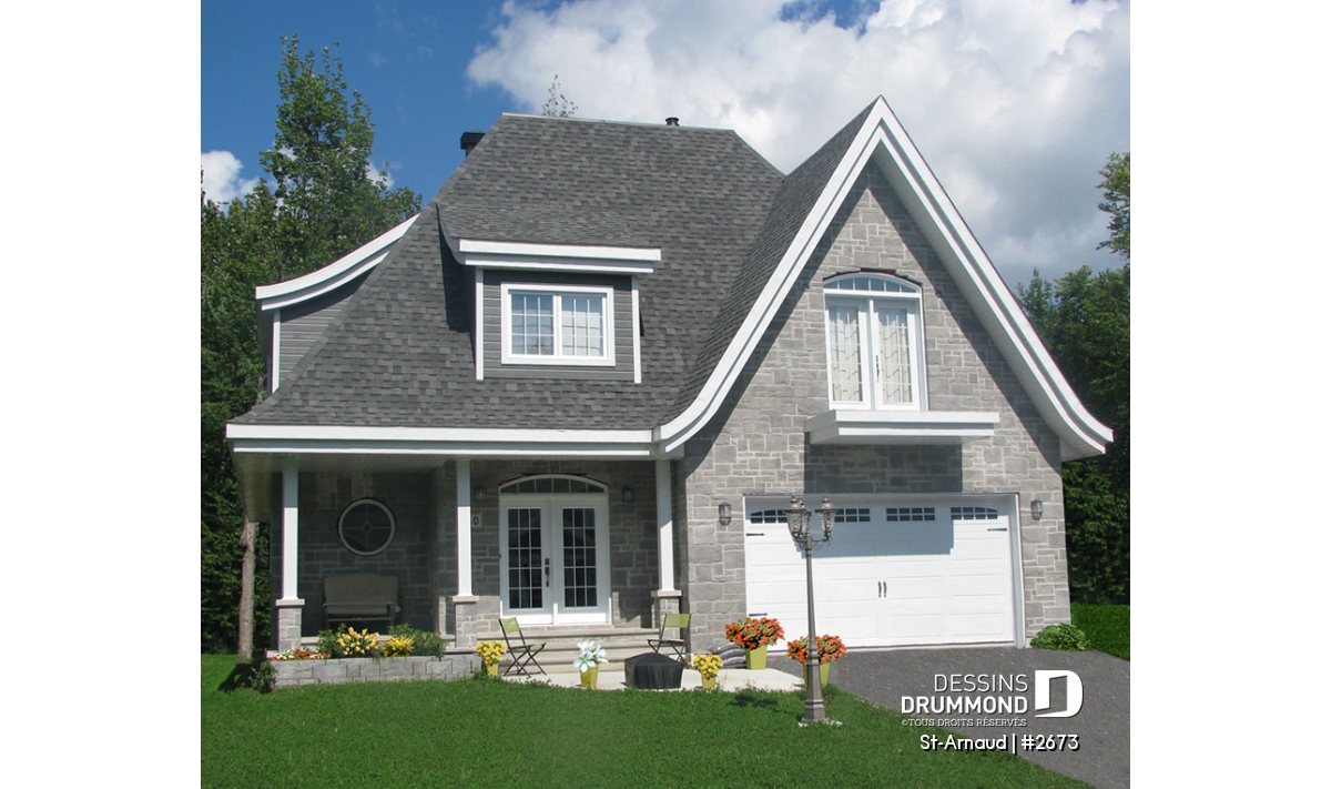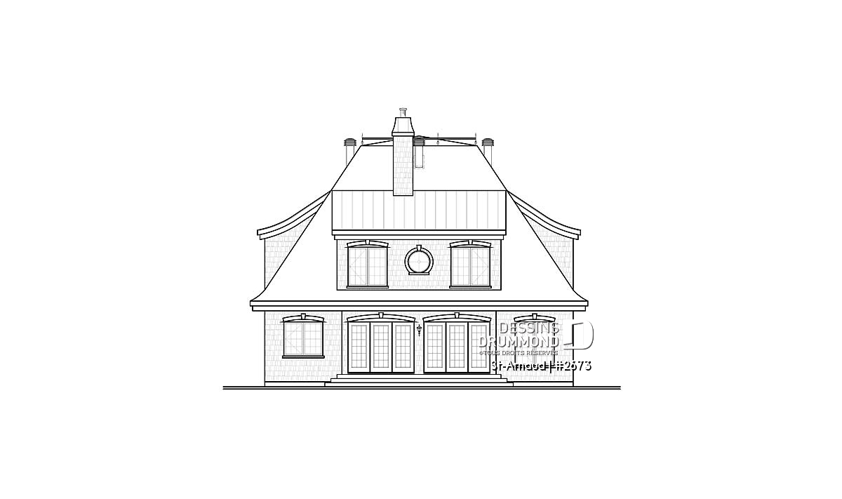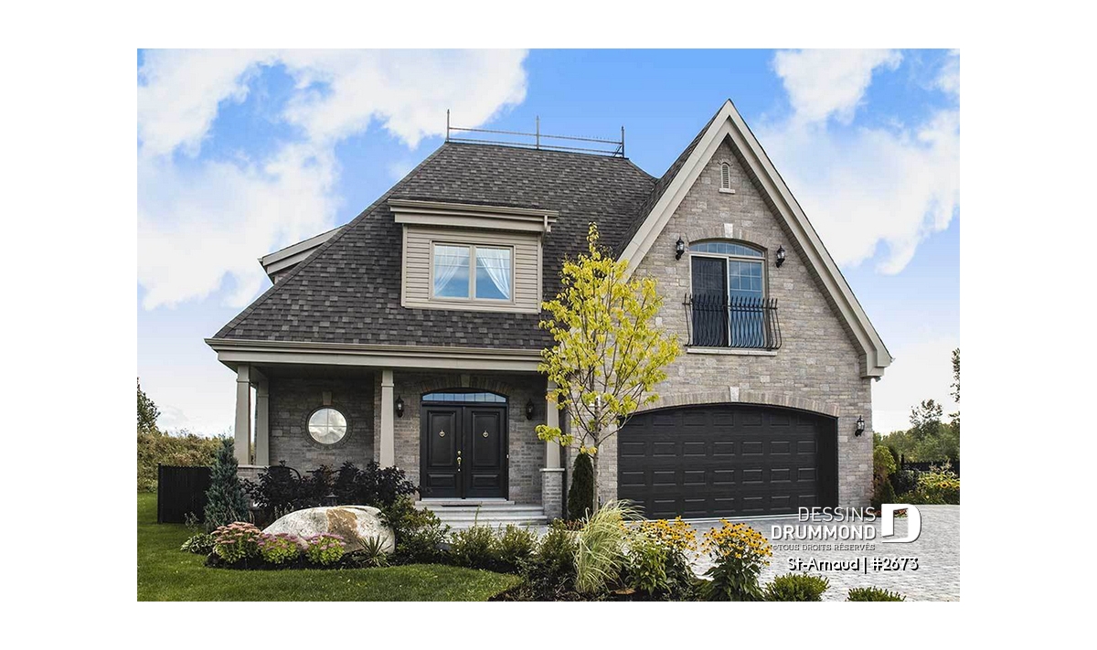Différente de l’ensemble des maisons genre manoir que nous sommes tant habitués de voir, celle-ci propose un habillage extérieur davantage épuré, des lignes simples tout comme les lucarnes en chien-assis et assurément un volume intérieur des plus logeables avec ce carré de 42 pieds de largeur par 44 pieds de profondeur agrémenté d’un plafond à 9 pieds au rez-de-chaussée.