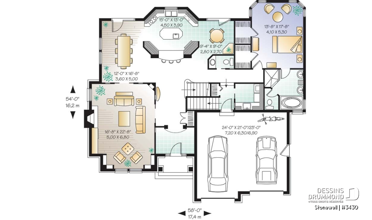 Tout à fait imposant avec ses quelques pignons et ses 58 pieds de façade principale, ce cottage impressionne tout autant avec un intérieur des plus confortables permettant aux parents de fort bien vivre au rez-de-chaussée et aux enfants d’être maîtres de l’étage tout en ayant suffisamment d’espace à partager entre frères et sœurs ou entre amis.