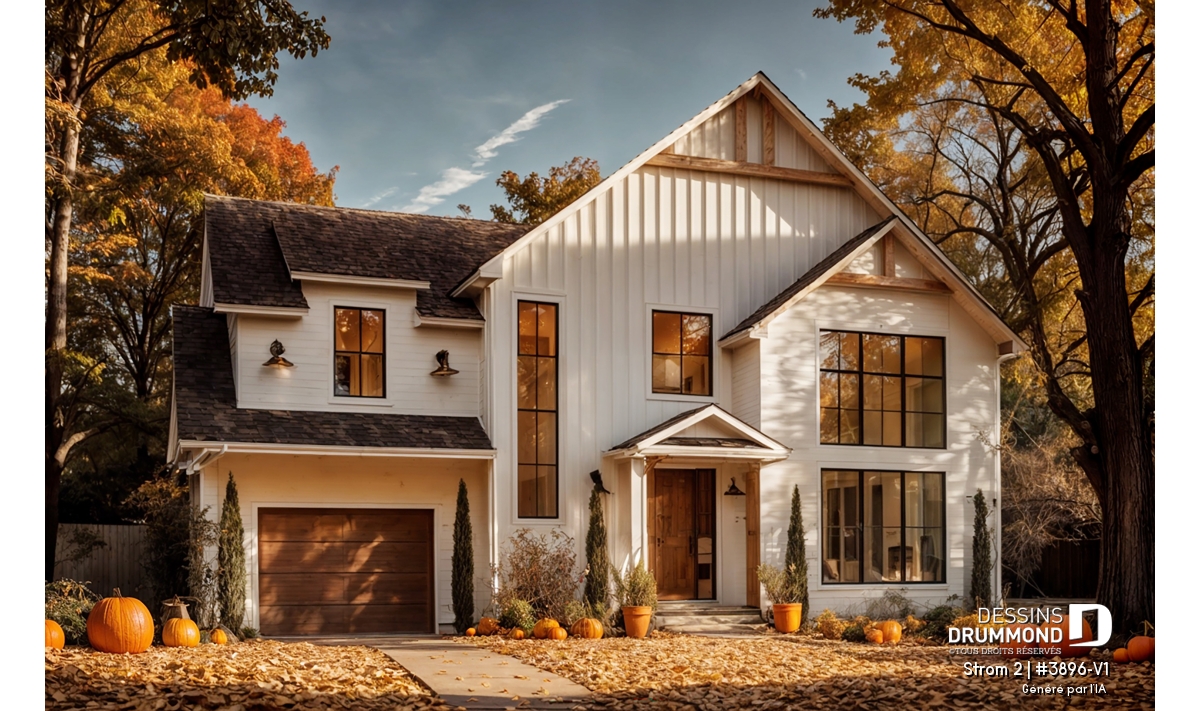 Découvrez le plan de maison STROM 2, la version Farmhouse de notre populaire plan contemporain Strom, une maison qui combine à merveille élégance moderne et charme champêtre. Cette demeure à étage a été pensée pour répondre aux besoins des familles d’aujourd’hui, offrant à la fois espaces lumineux, fonctionnalité et détails chaleureux qui font toute la différence au quotidien.