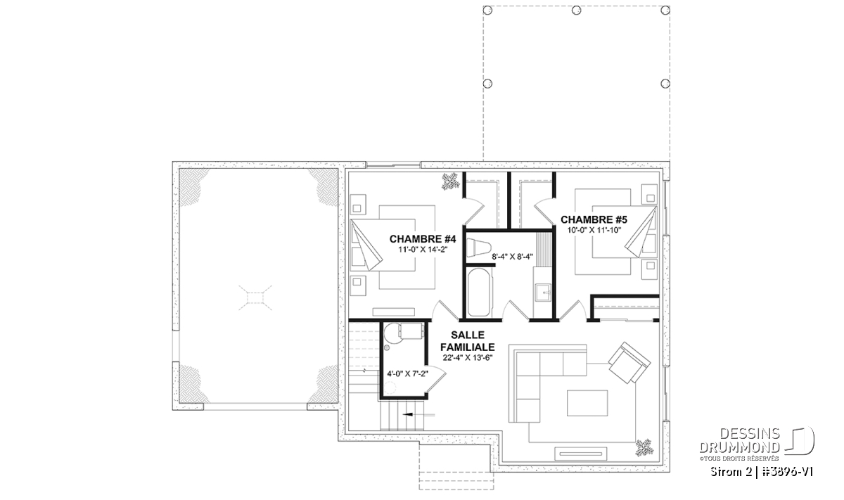 *Si vous souhaitez acheter le plan du sous-sol aménagé, tel que présenté sur la page de ce plan, veuillez sélectionner cette option dans le panier d'achat, dans la section "Sélectionner votre fondation". Si vous ne sélectionnez pas cette option, vous recevrez le sous-sol non fini, sans frais additionnel.