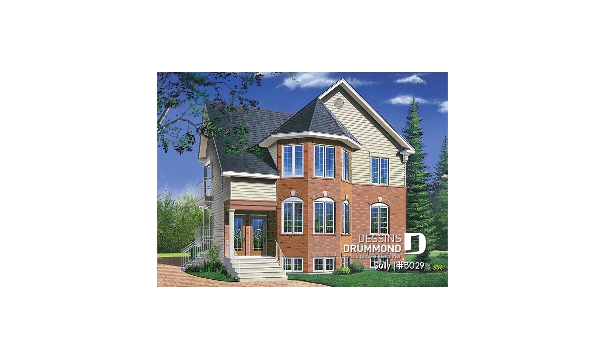 Fenestration abondante, entrée avant abritée, balcons arrière abrités.