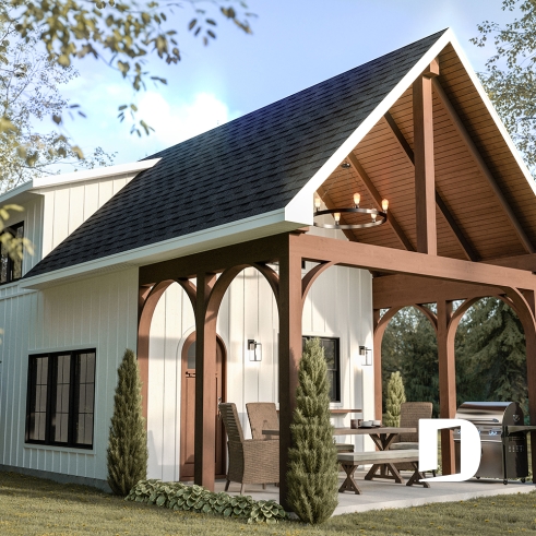 Petite maison de style farmhouse, pouvant servir de maison d'invités, de pavillon de piscine ou être construite comme mini-maison.