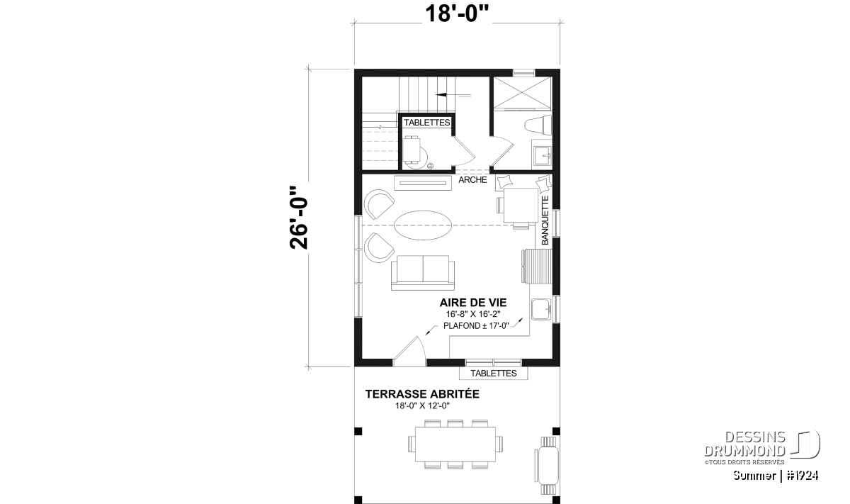 | Largeur | 18'0" | Profondeur | 26'0" |
