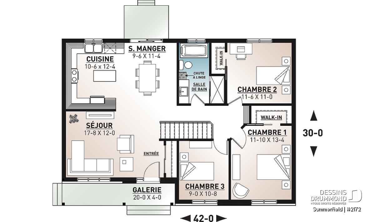Chute à linge, Walk-in ch. maîtres, Ilôt, Bain et douche séparés, Entrepreneur, Auto-Construction