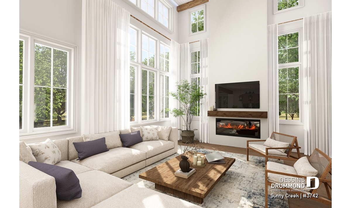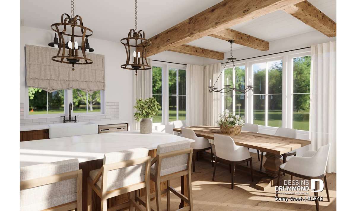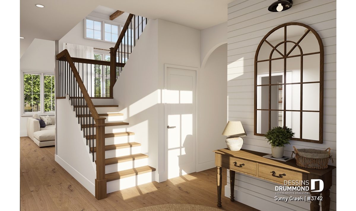 Ce plan est conçu sur une dalle flottante, mais plusieurs options de fondation sont disponibles afin de l’adapter à votre terrain et à vos besoins. Cette maison Farmhouse élégante et lumineuse promet un quotidien confortable, convivial et plein de charme, où chaque détail a été pensé pour votre bien-être.