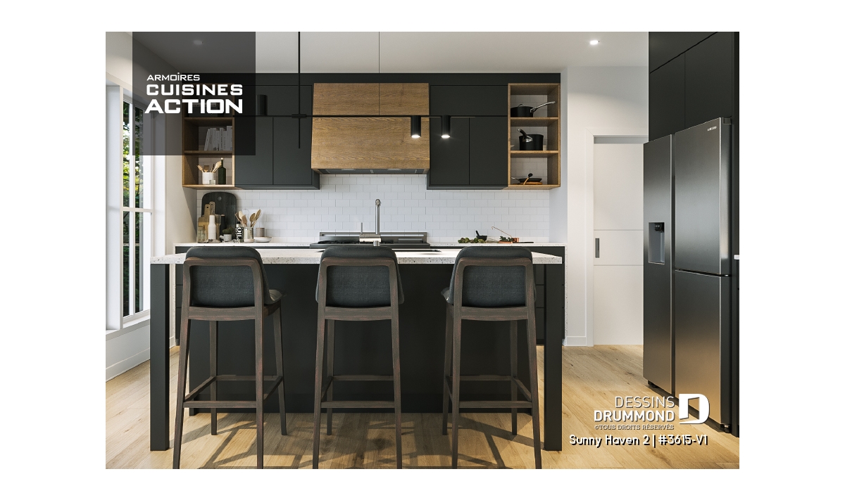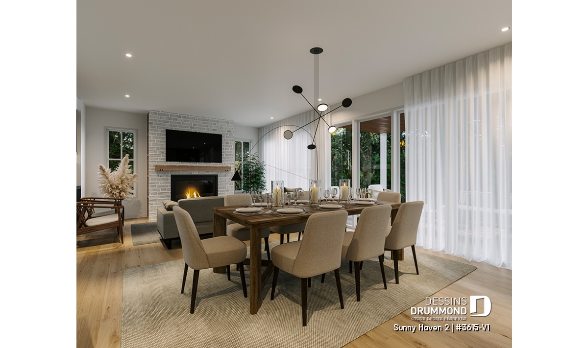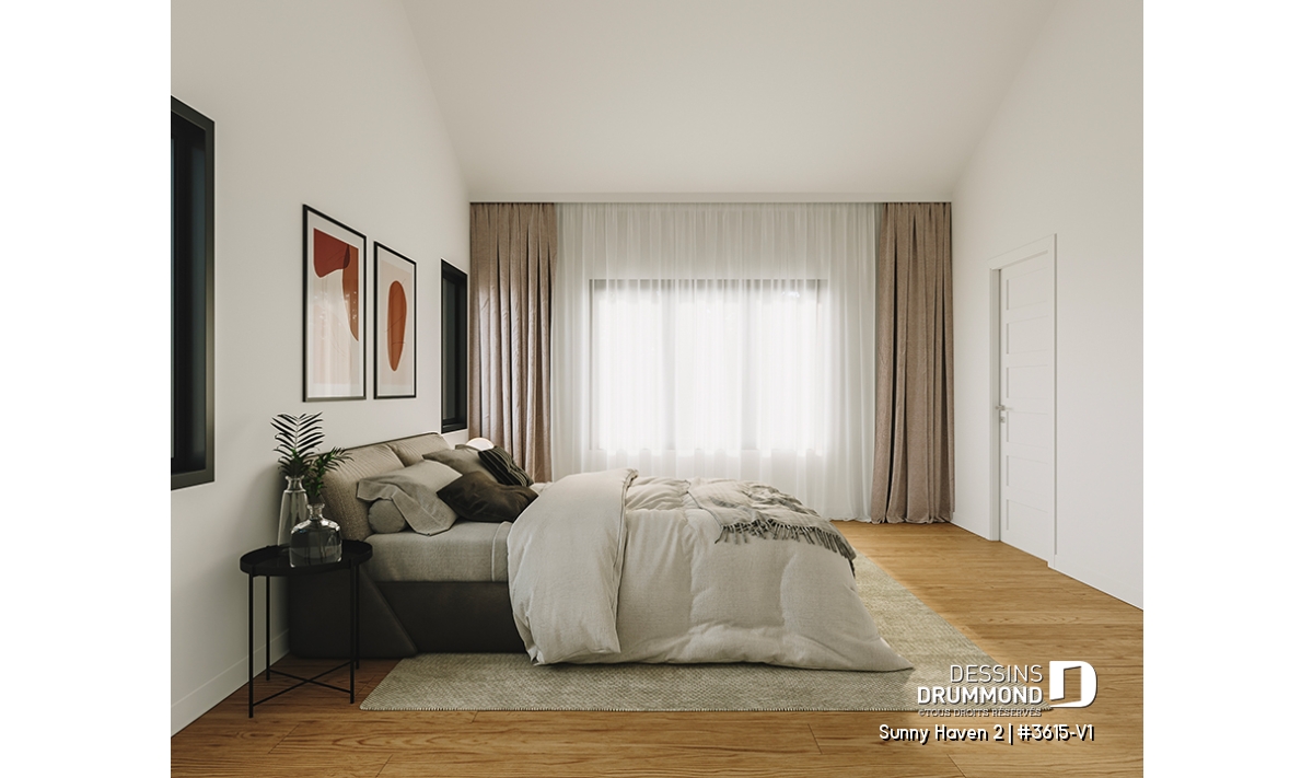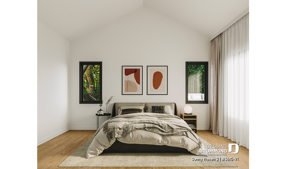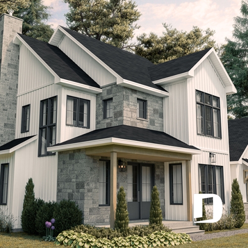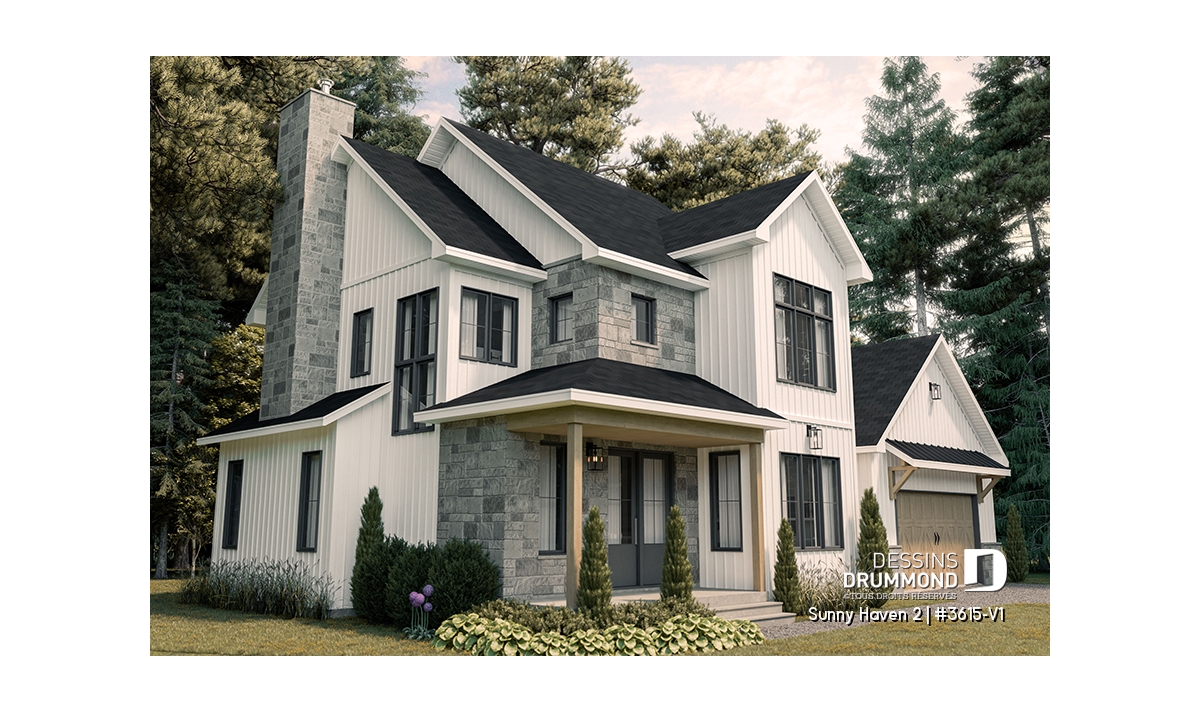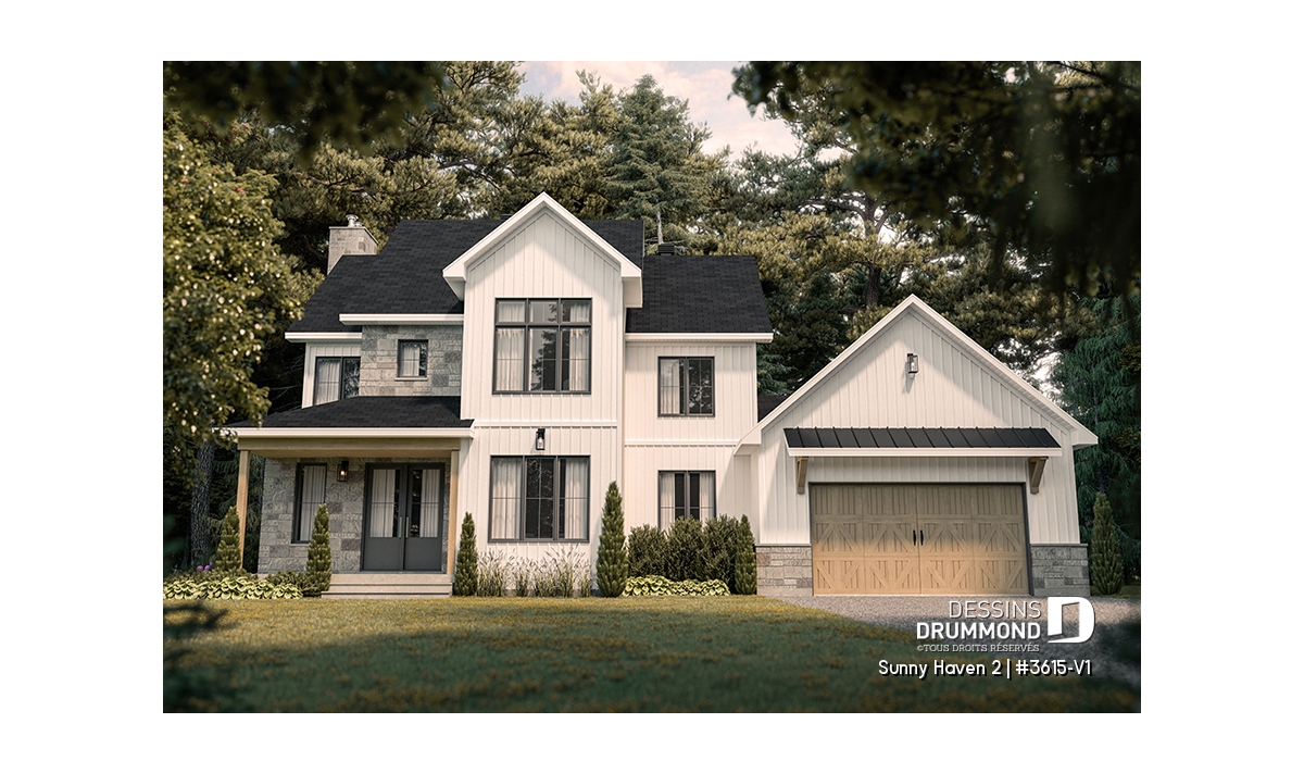 Le plan de maison SUNNY HAVEN 2 (#3615-V1), est un version agrandie de son plan de base #3615. Cette nouvelle version offre 543 pieds carrés de plus que du modèle qu'il origine, et un garage double au lieu d'un simple.