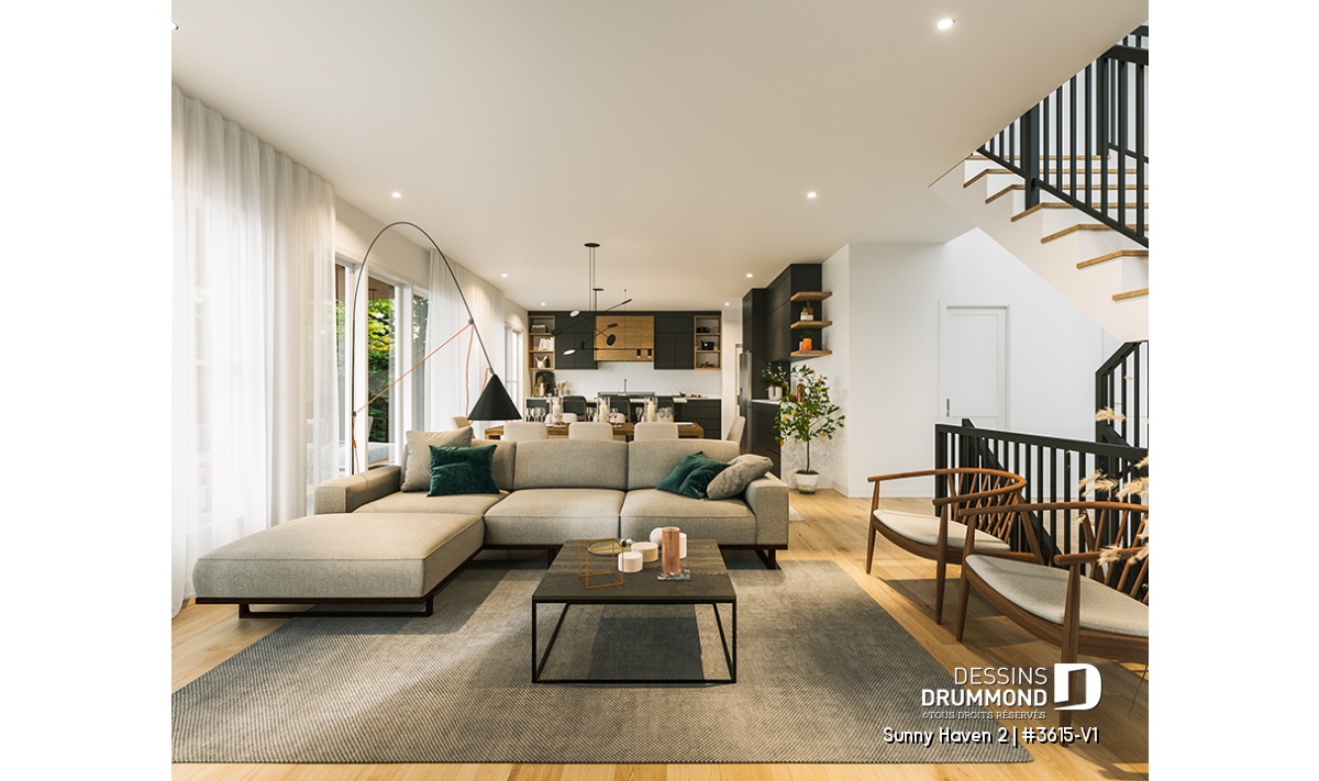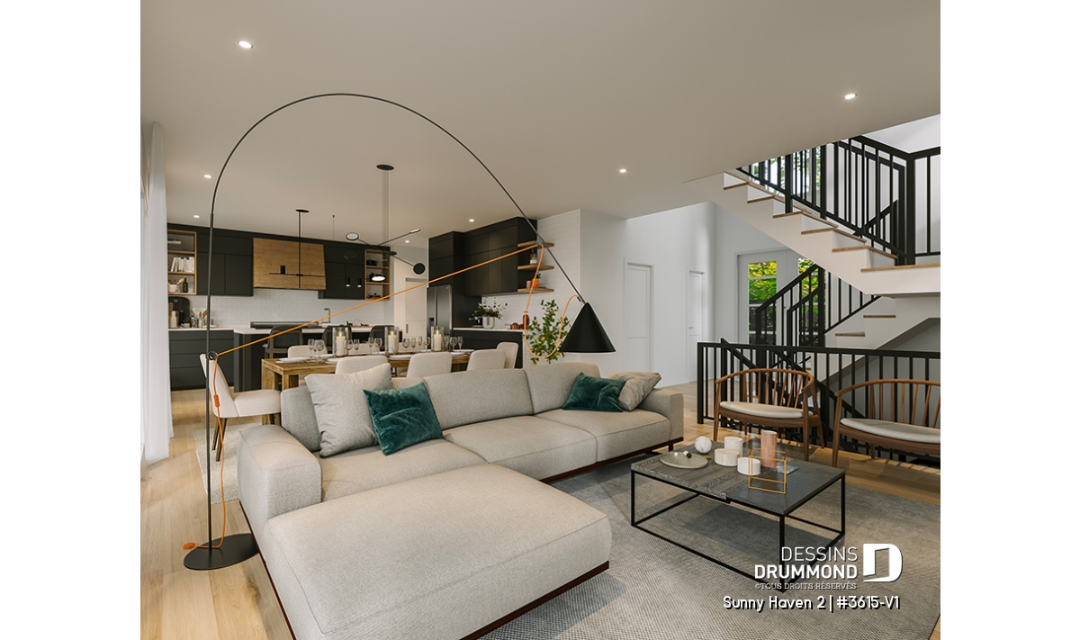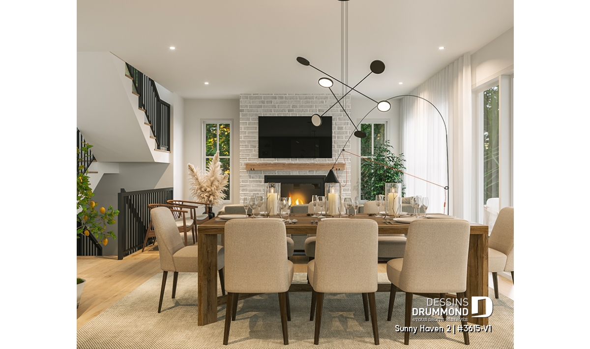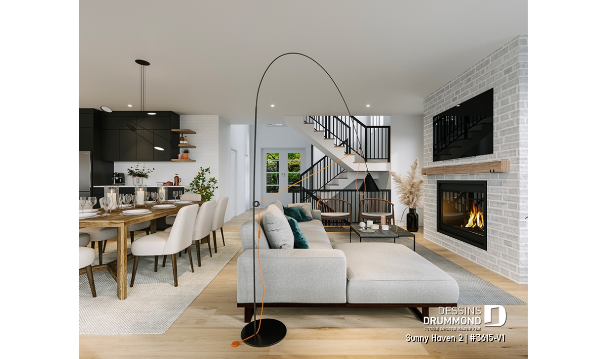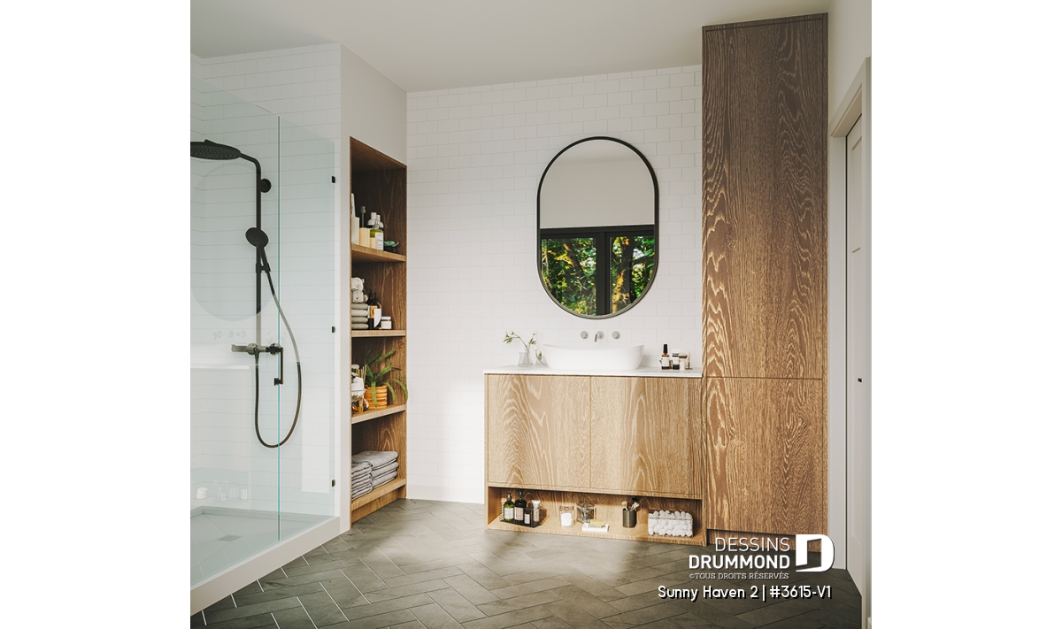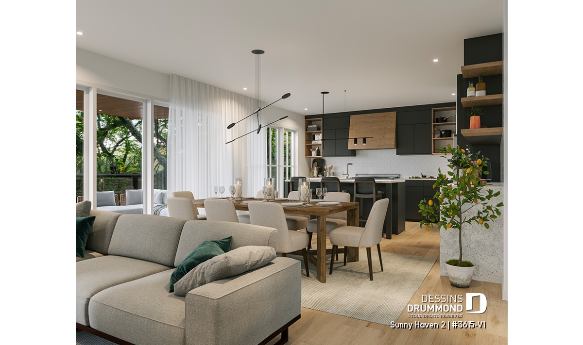 Le plan de maison SUNNY HAVEN 2 (#3615-V1), est un version agrandie de son plan de base #3615. Cette nouvelle version offre 543 pieds carrés de plus que du modèle qu'il origine, et un garage double au lieu d'un simple.