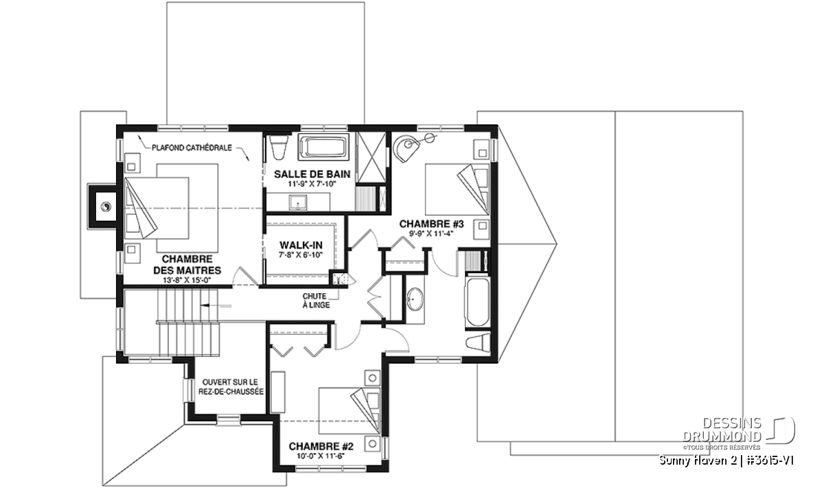Plafond à 9' au rez-de-chaussée et 8' à l'étage, sauf à la suite des parents qui a un plafond cathédral.