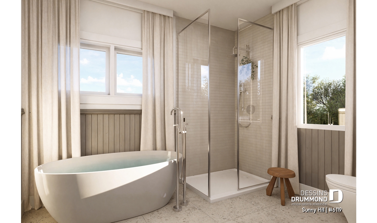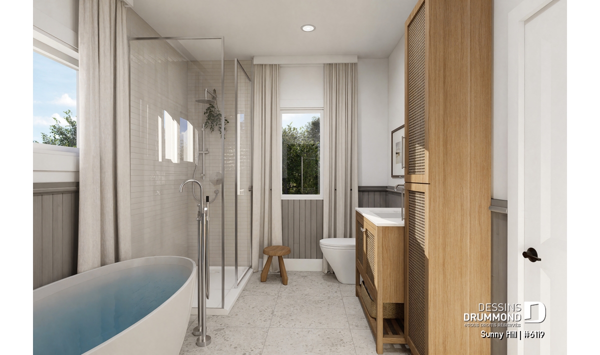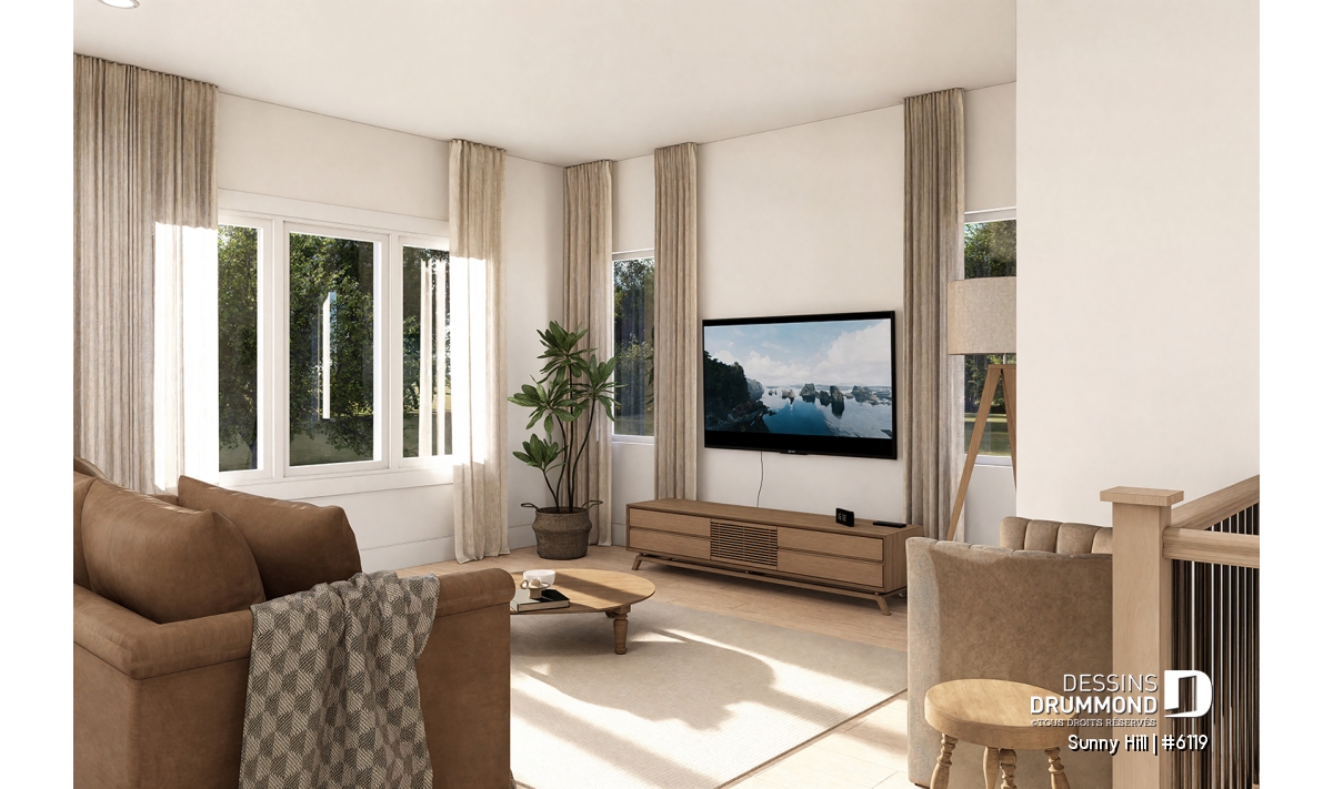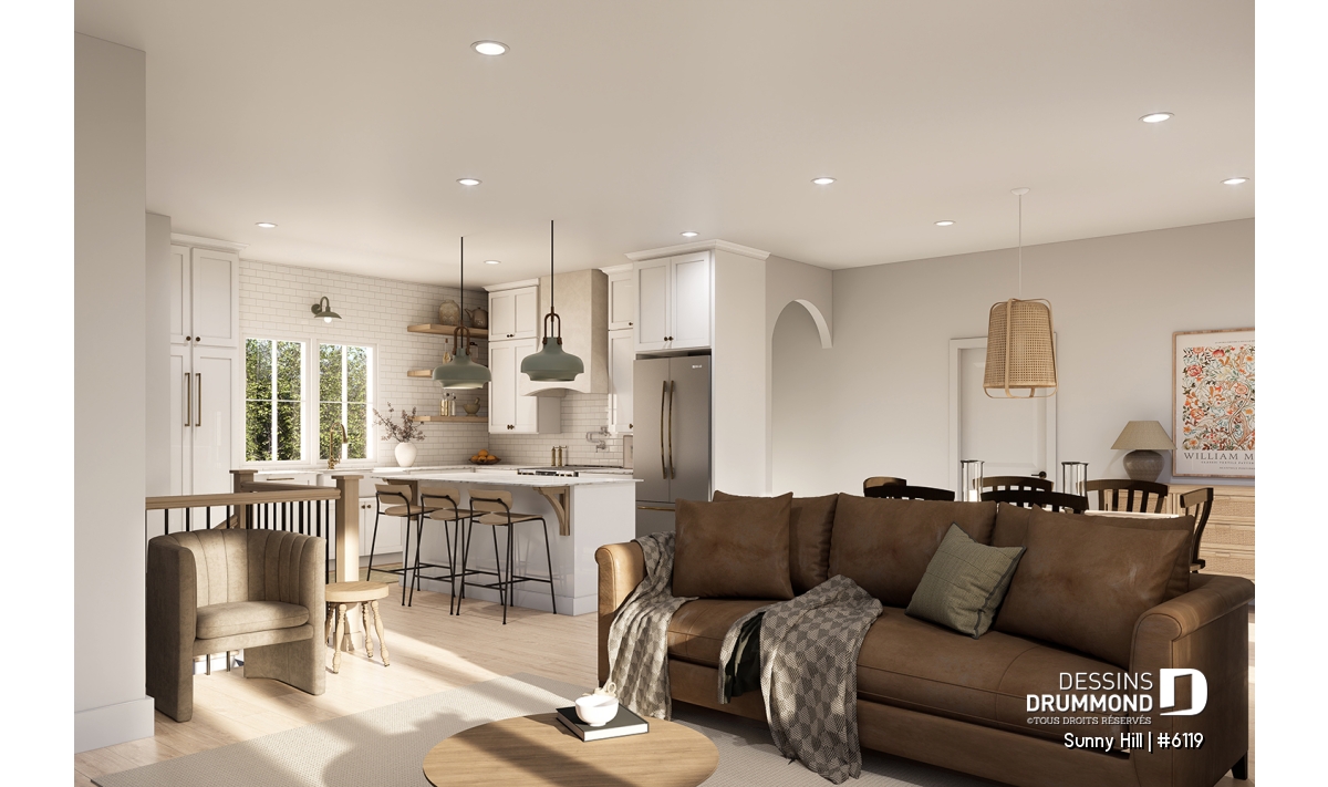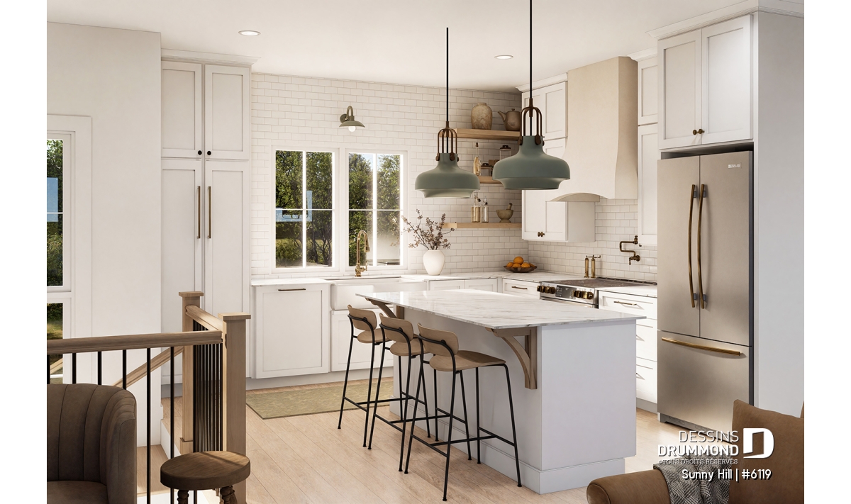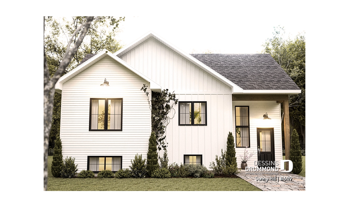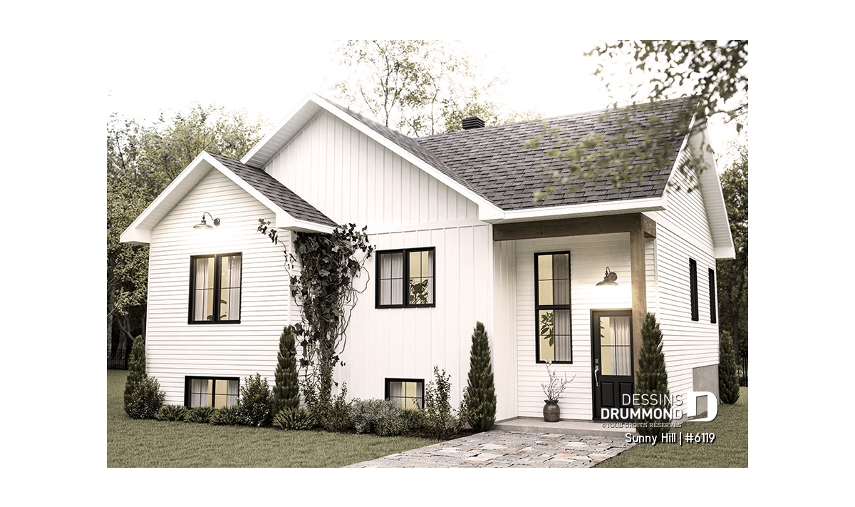 Le plan de maison Sunny Hill (#6119) vous plaira pour son total de 2050 pi.ca. aménagés sur 2 niveaux et son style d'inspiration Farmhouse Moderne.