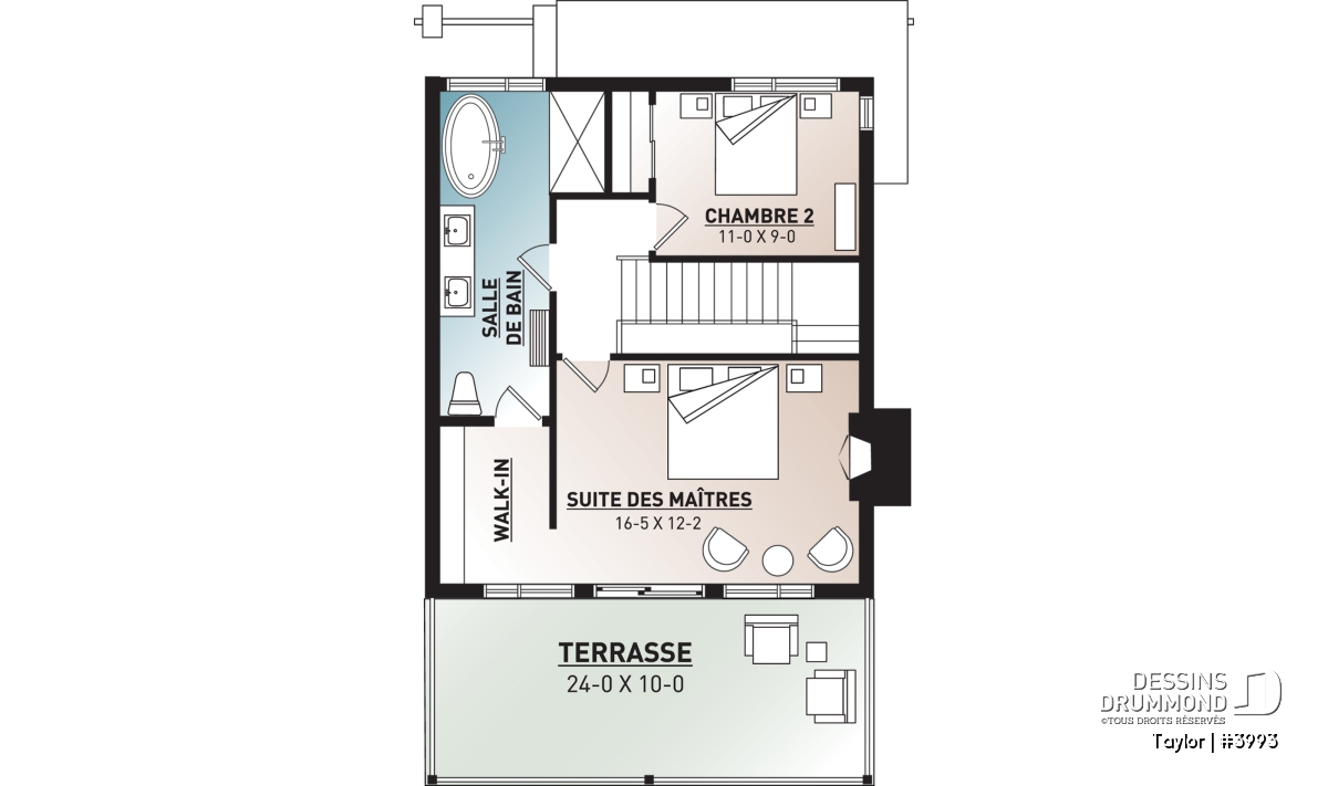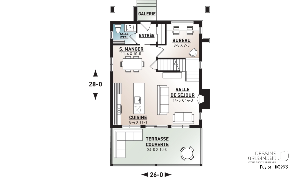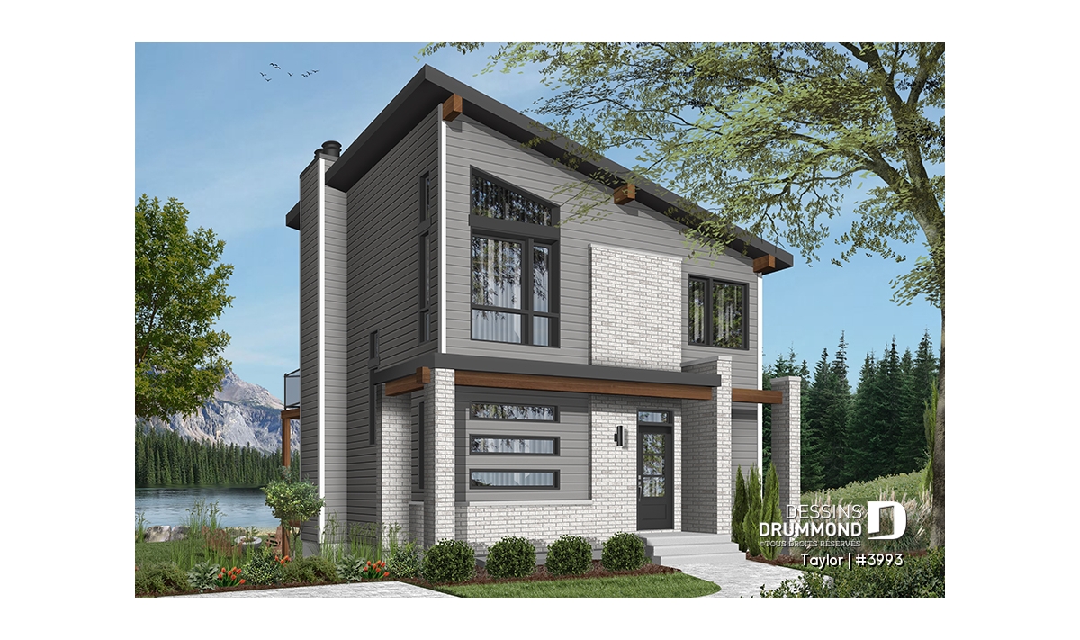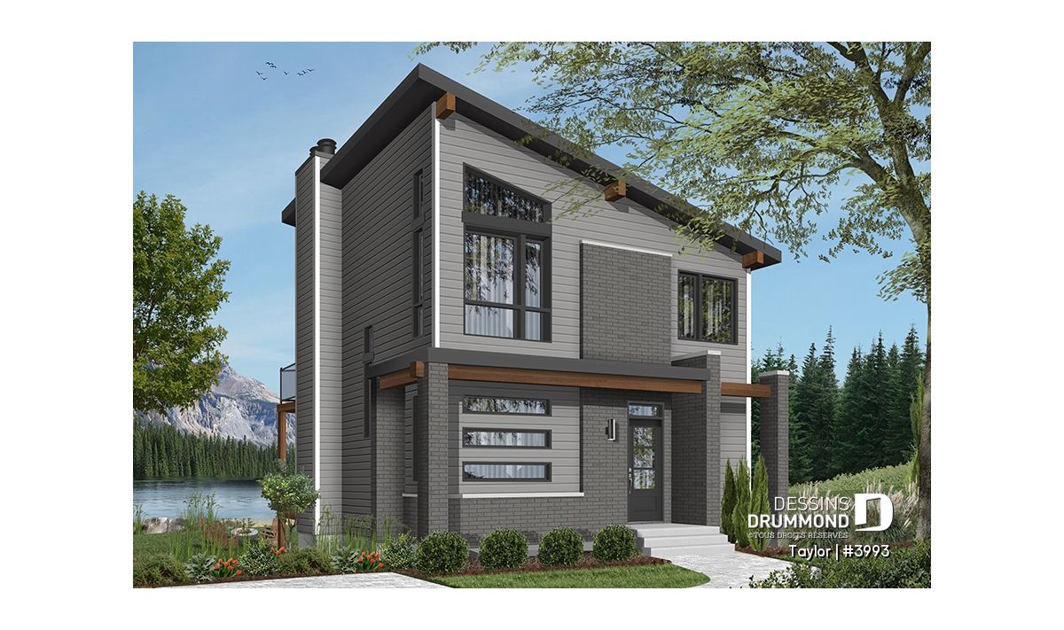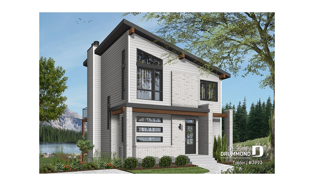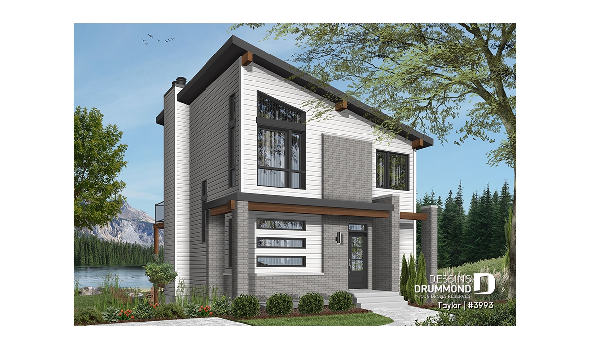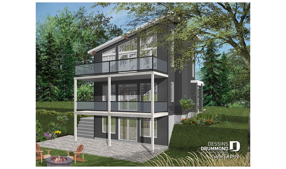 Le nouveau plan de chalet contemporain de Dessins Drummond (plan # 3993) aussi nommé « Taylor », charme dans un premier temps par la quantité impressionnante de fenêtres et portes qu’il offre aux futurs propriétaires. Ces ouvertures ainsi proposées permettent une maximisation de la lumière naturelle et ce dans plusieurs pièces clé de la maison, soit le secteur activités à l’arrière, ainsi qu’à la chambre des maîtres. Que ce soit à la campagne en bordure d’un boisé, au bord d’un lac ou d’une rivière, ou en montagne, le nouveau plan de chalet de Dessins Drummond « Taylor » vous fera profiter au maximum des vues disponibles de votre nouveau terrain.