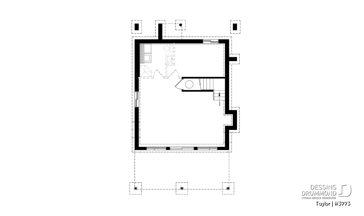 Le sous-sol de ce nouveau chalet Dessins Drummond est en rez-de-jardin et non fini, à l’exception du coin buanderie. Vous pourrez donc décider d’y aménager des chambres supplémentaires, une salle familiale ou simplement y construire des espaces de rangement pour vos articles de sport, etc.