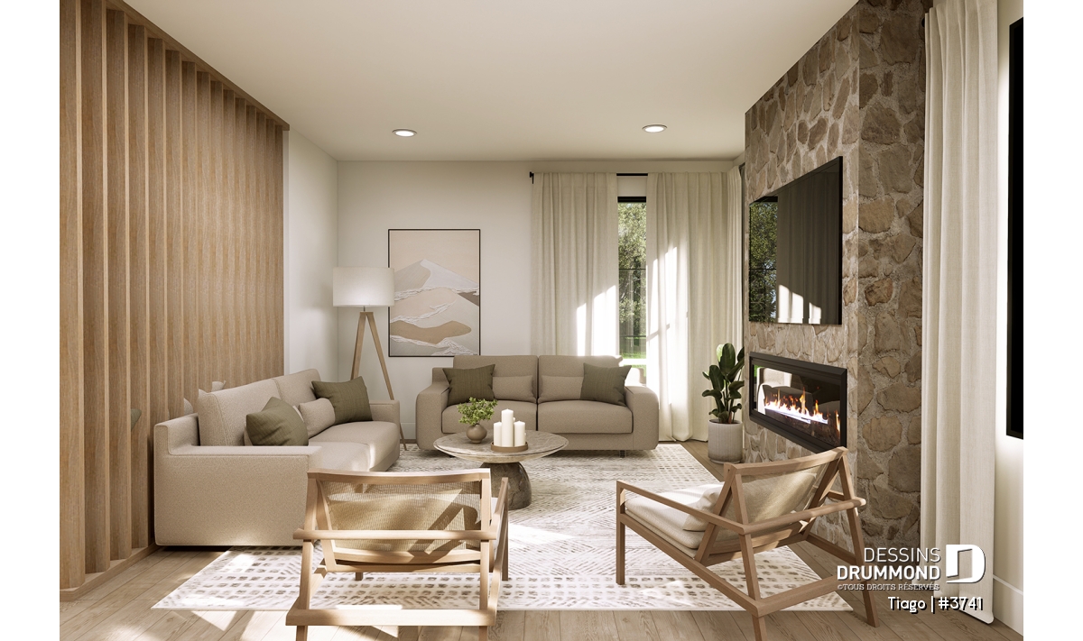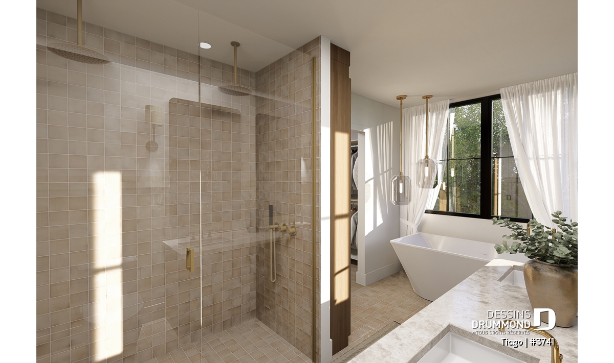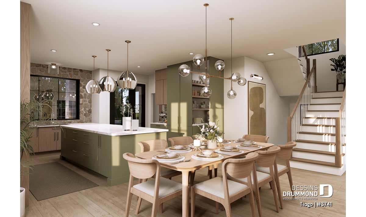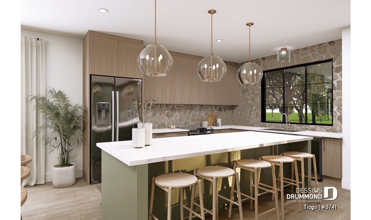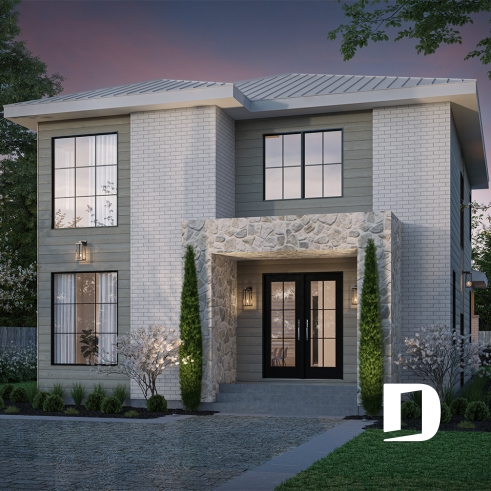 Laissez-vous séduire par le plan de maison TIAGO (#3741), une demeure au design raffiné qui marie harmonieusement des matériaux bruts au charme naturel avec des lignes épurées et modernes. Avec 2184 pi² aménagés sur deux étages, et la *possibilité d’ajouter un sous-sol entièrement aménagé de 1101 pi², cette maison offre un espace de vie généreux et fonctionnel.