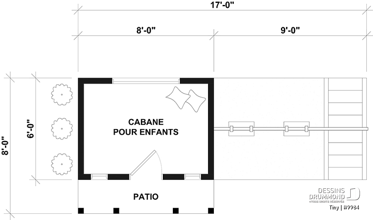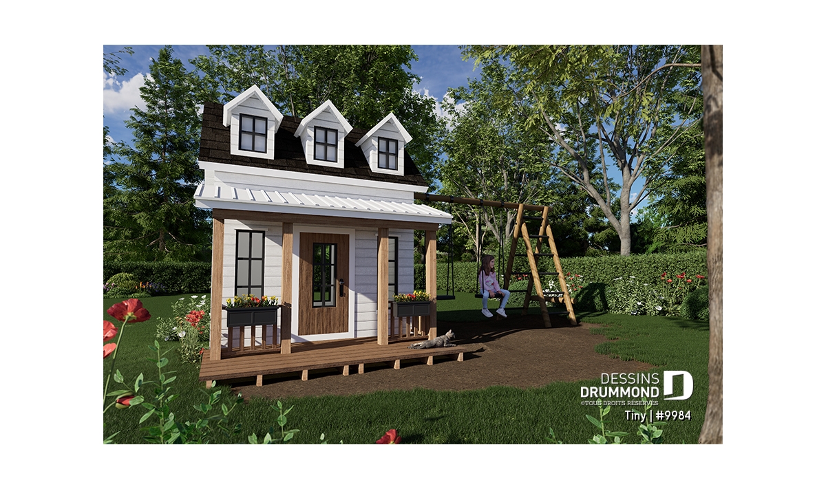 Petite maisonnette pour enfant de 8'-0" x 6'-0", avec module de balançoires de 9'-0" x 6'-0" — pour jouer, rêver et s’amuser !