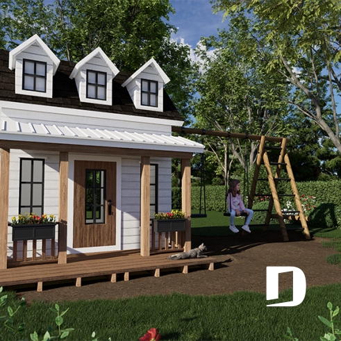 Inspirée de notre plan ACÉLIA 2 (#1875-V1), cette magnifique maisonnette pour enfants évoque à merveille le charme des maisons traditionnelles d’autrefois. Avec ses lignes classiques, ses détails soignés et son allure inspirée de l’architecture campagnarde et coloniale, elle semble tout droit sortie d’un conte.