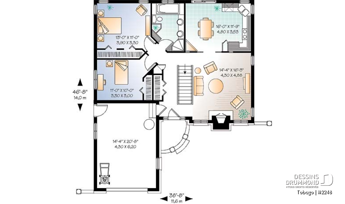 | Largeur | 38'8" | Profondeur | 46'8" |