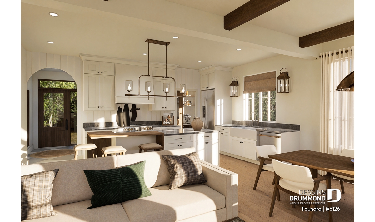 Aire ouverte combinant cuisine, salle à manger et salon : un espace chaleureux pour recevoir famille et amis!