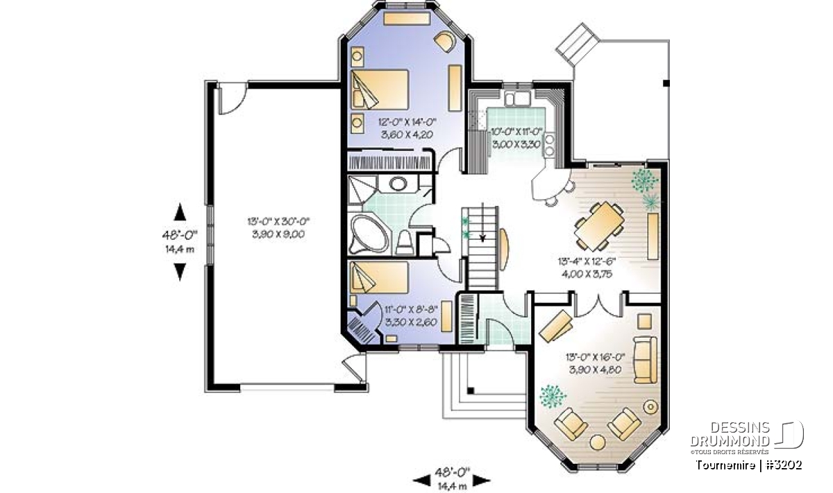 | Largeur | 48'0" | Profondeur | 48'0" |