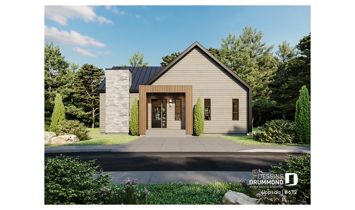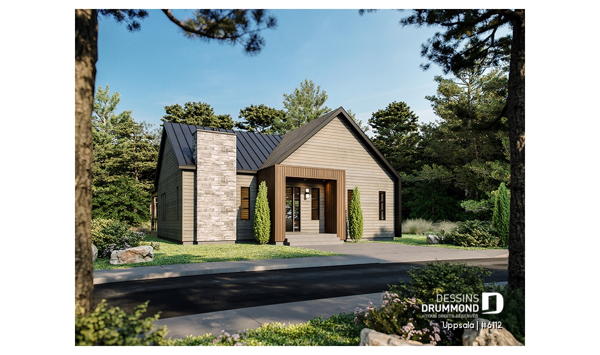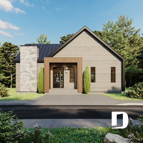 Plan de maison de style épuré Scandinave, avec sous-sol aménagé (optionnel $).