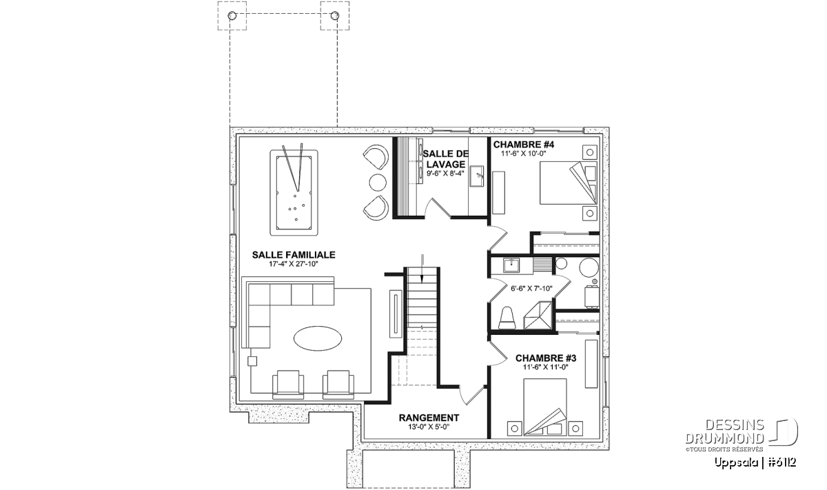 *Si vous souhaitez acheter le plan du sous-sol aménagé, tel que présenté sur la page de ce plan, veuillez sélectionner cette option dans le panier d'achat, dans la section "Sélectionner votre fondation". Si vous ne sélectionnez pas cette option, vous recevrez le sous-sol non fini, sans frais additionnel.