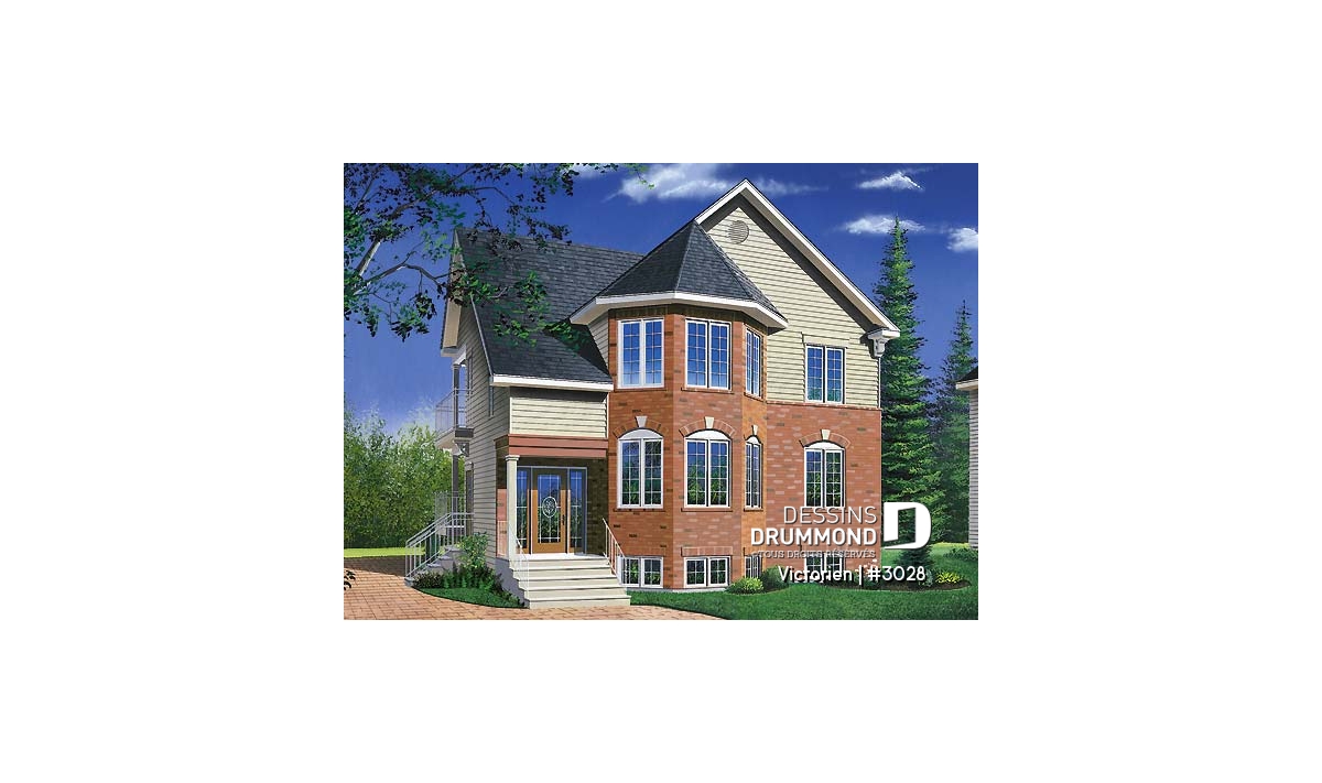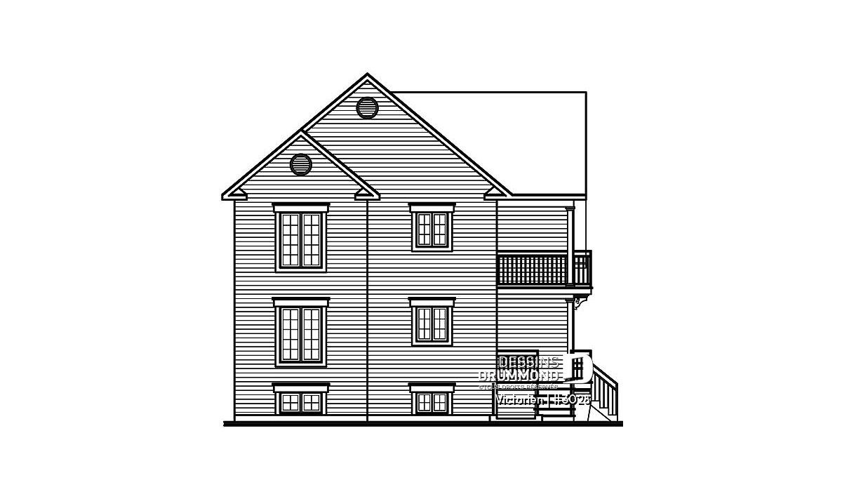 Vue avant - MODÈLE DE BASE - Plan de duplex, 2 chambres par unité, belle fenestration, balcon arrière, grande cuisine avec porte patio - Victorien