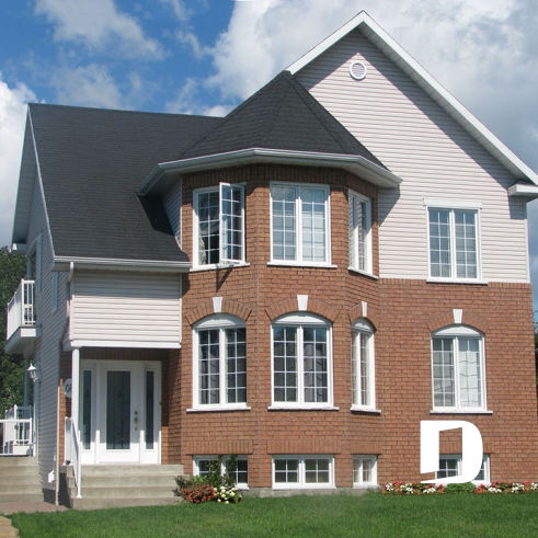 Entrée principale avant abritée, balcons arrières abrités pour les 2 logements, fenestration abondante.