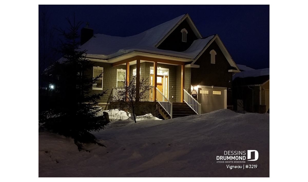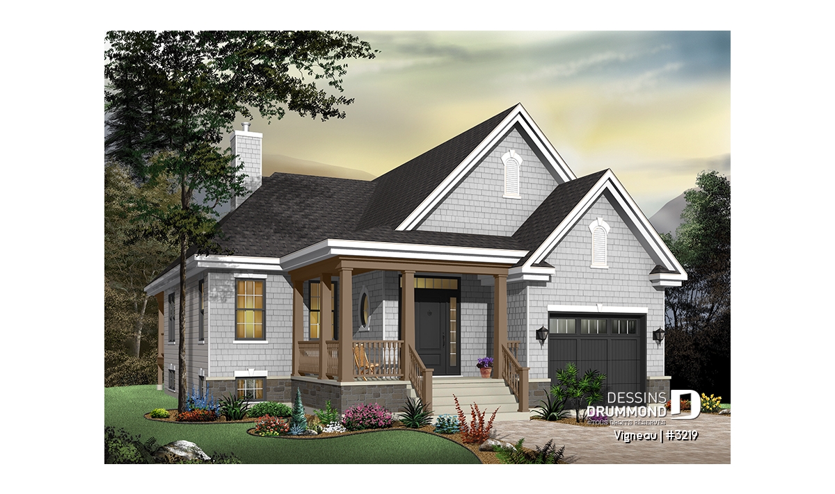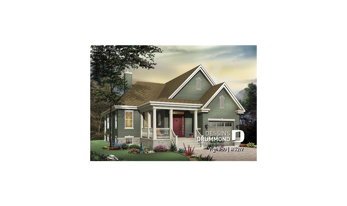 Découvrez le plan de maison VIGNEAU (#3219) plain-pied de style Cape Cod avec garage, conçu pour répondre aux besoins des familles québécoises en quête de confort et d’authenticité. Avec son extérieure champêtre et chaleureux, cette demeure se distingue par son élégante galerie avant qui invite à la détente et son charme intemporel qui s’harmonise parfaitement aux paysages du Québec.