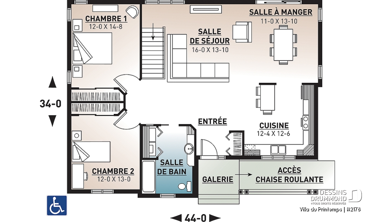| Largeur | 44'0" | Profondeur | 34'0" |