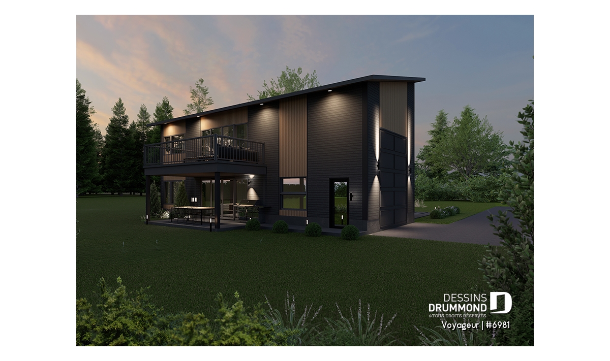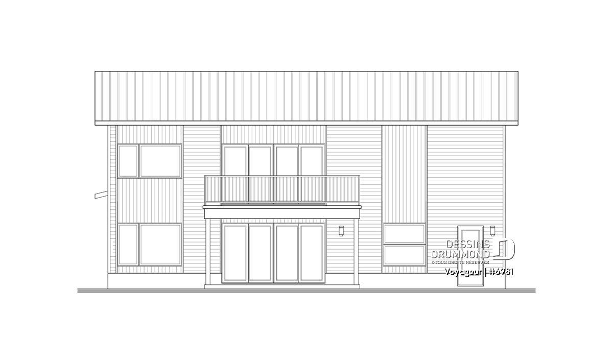 **L'estimation du coût de construction est pour le plancher de base uniquement. Pour ce plan #6981, elle inclut le balcon arrière couvert, mais pas le balcon à l'étage. Ce dernier est prévu si vous construisez l'option 1, qui n'est pas estimé.