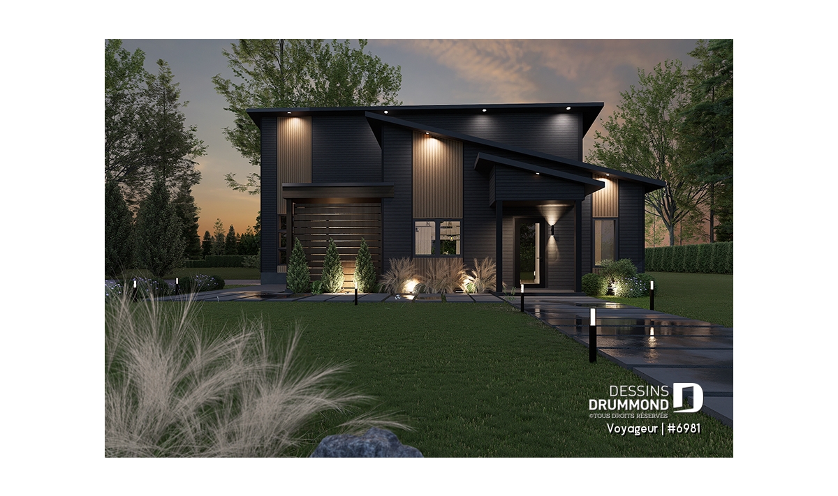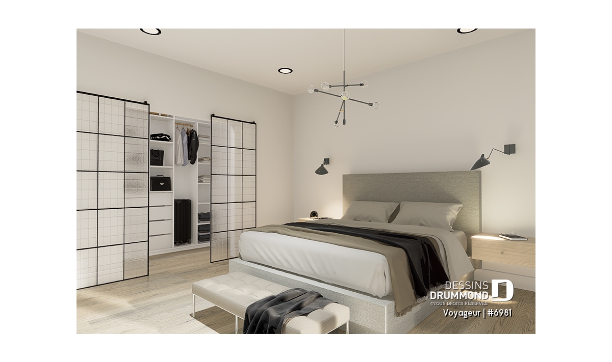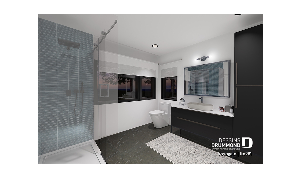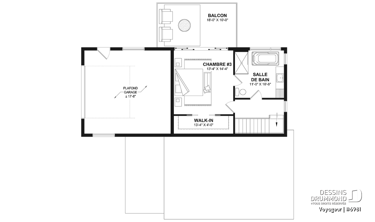 Il inclut un plafond à 9' pour la maison et à 17'8'' pour le garage et sa salle de douche.
