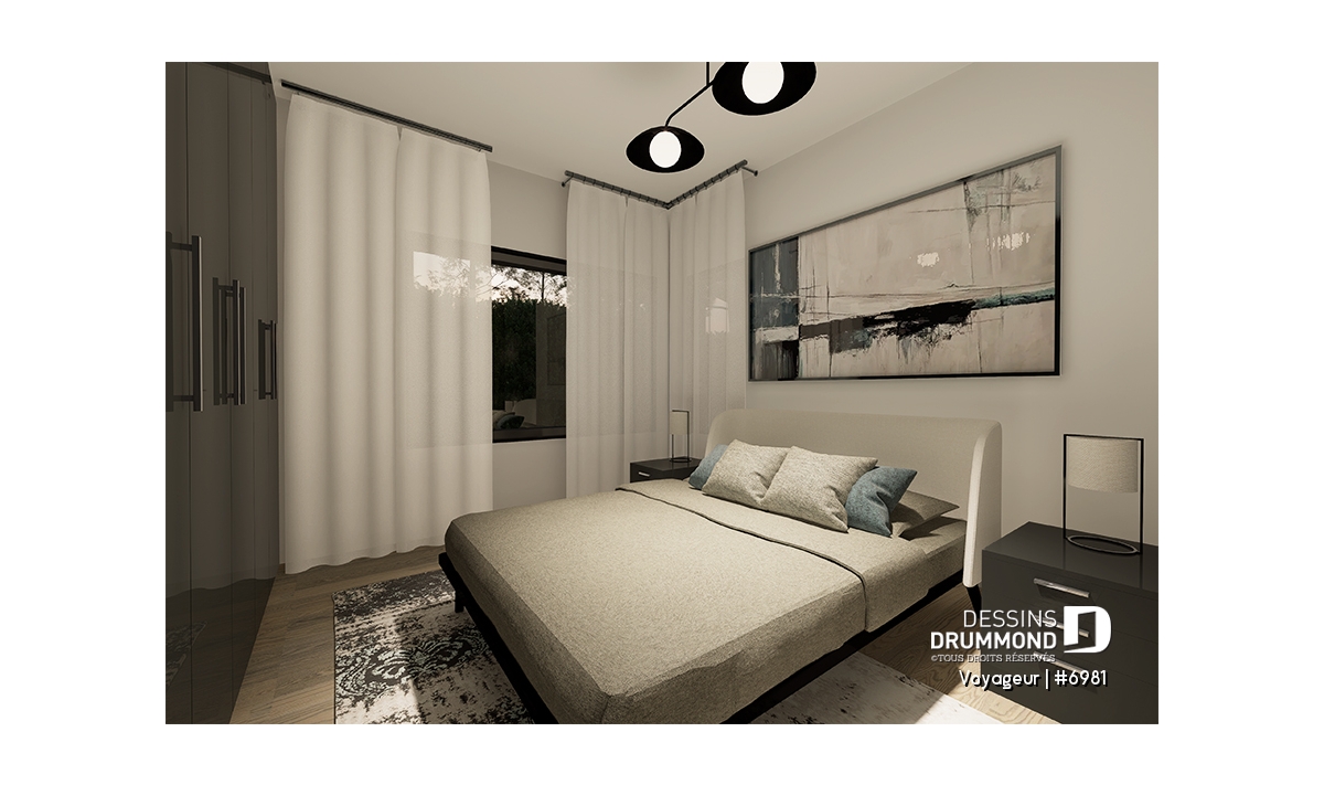 Plan de maison moderne 1 chambre avec option 3 chambres, dont 2 avec salles de bain privées.