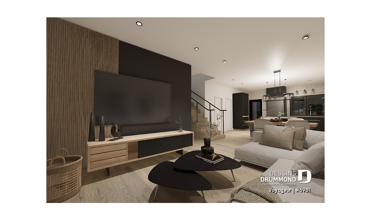 Une grande salle familiale avec accès à la terrasse arrière couverte, ainsi qu'une salle à manger sont aussi ajoutées.