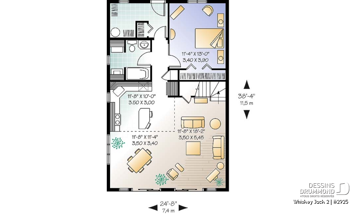 | Largeur | 24'8" | Profondeur | 38'4" |