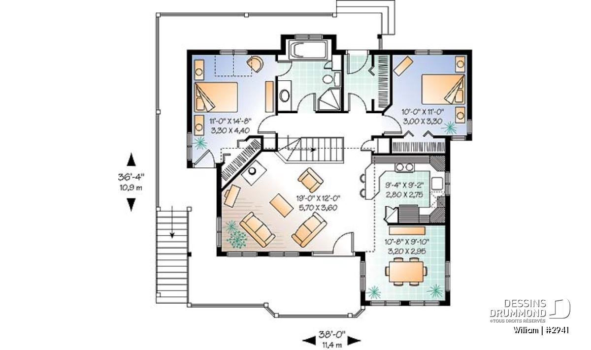 | Largeur | 38'0" | Profondeur | 36'4" |