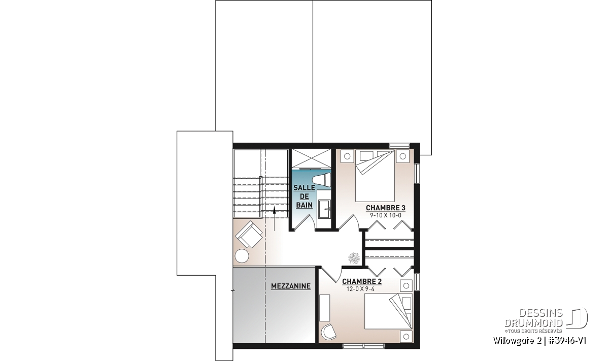 Version 2 chambres: plan #3946.
