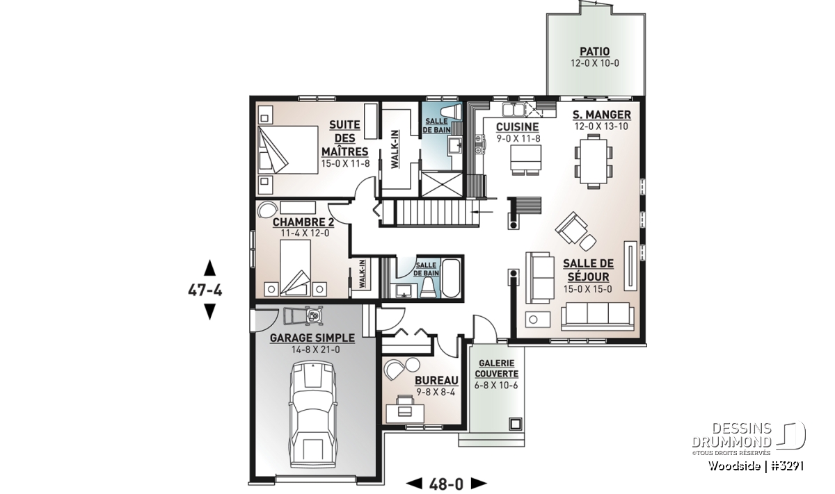 Le nouveau plan de maison # 3291 de Dessins Drummond, aussi appelé Woodside, propose un plancher qui procurera confort et commodités à votre famille.