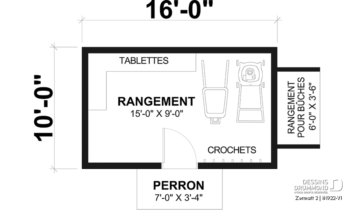 | Largeur | 16'0" | Profondeur | 10'0" |